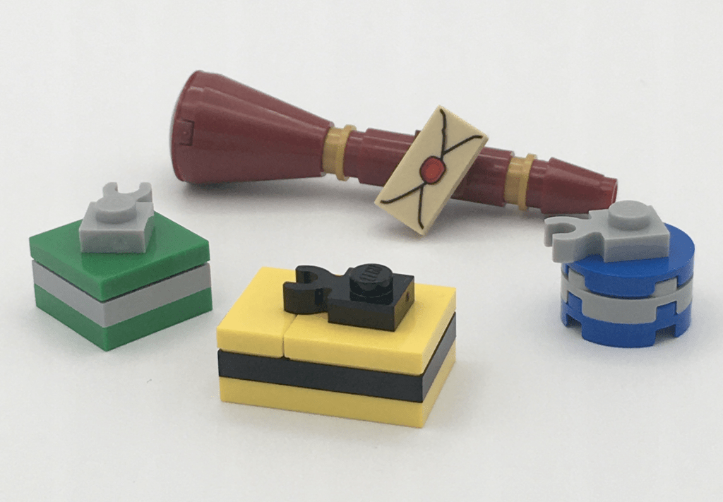 Matt: After Hermione came to the rescue yesterday, HP needs to grab a point today or tomorrow to secure the seasonal victory. Behind Door #23 are festive Hogwarts house presents. Owners of last year’s calendar will recognize today’s gift as the 2019 calendar also offered 4 gifts representing each of the Hogwarts houses (Gryffindor, Ravenclaw, Hufflepuff, and Slytherin). Worth nothing that the shapes of each gift are different than their 2019 counterparts adding to the variance from year to year, which is nice if this is your 2nd annual HPAC. The main difference, however, is the wrapped Firebolt as the Gryffindor house gift. I think this is a cool addition, and it is synonymous with the 4th novel/film, as Harry gets an upgrade to his Nimbus 2000 at Christmas time by receiving the Firebolt from an anonymous sender (his godfather Sirius Black). I think the gold and dark red work best here on the broomstick, unlike the dark yellow/dark red Gryffindor present colours last year. The main knock on today’s entry are the use of 1×1 clips on the presents. With all the accessories now available to us via Clickits and Friends theme lines, they could have instead gone with pieces such as bows, flower, star, heart, quarter tiles, etc. It’s a minor gripe, but I definitely think this would have improved today’s offering. Overall though, a solid to-scale, festive and themed gift today. Could there have been better options for the 23rd of December? Yes, no doubt. But the gifts today certainly aren’t among the lower tier entries this year and I look forward to tomorrow’s offering.